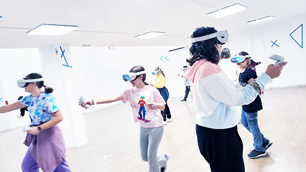 Μετά τις VR περιπέτειες, τα παιδιά συγκεντρώνονται στον ειδικά διαμορφωμένο χώρο για να συνεχίσουν