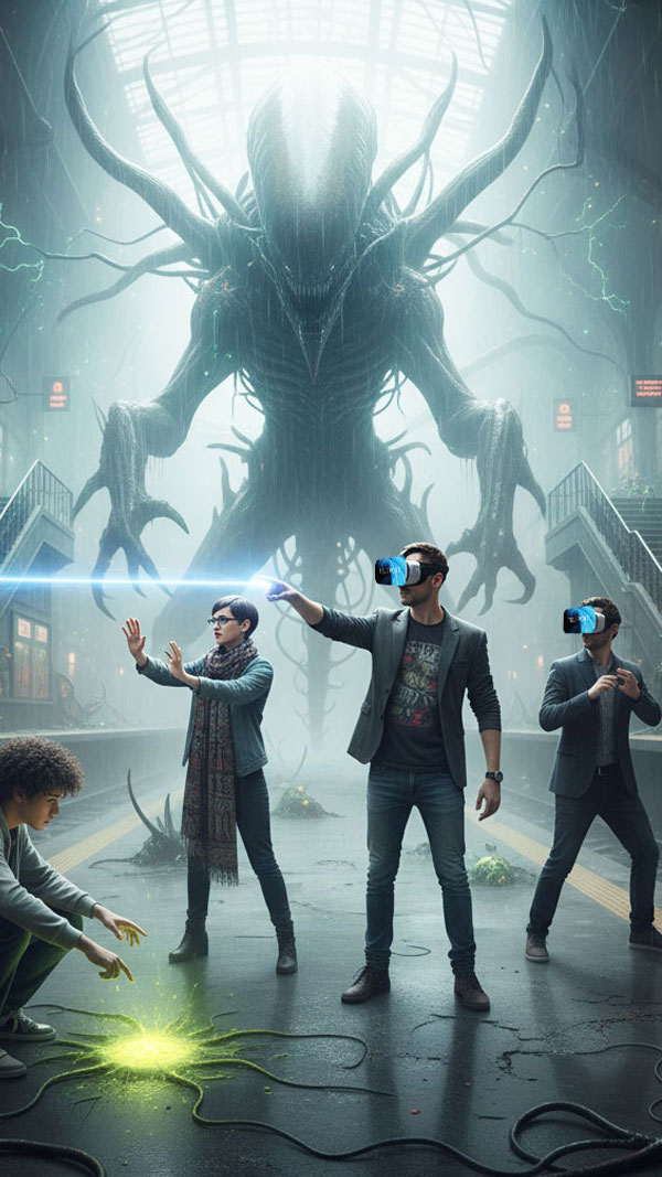 Προσπαθήστε να ολοκληρώσετε την αποστολή σας, με τις εξωγήινες οντότητες να πλησιάζουν απειλητικά. Προχωρήστε μέσα σε στενά περάσματα, ανελκυστήρες, γέφυρες κλπ. Προσοχή! Πρόκειται για μια δυνατή εμπειρία που μπορεί να σας προκαλέσει ταραχή, υψοφοβία, κλειστοφοβία κλπ. Θα το τολμήσετε; Η ελευθερία της κίνησης (όπως στον φυσικό κόσμο) και η διάδραση με το περιβάλλον και τους άλλους συμμετέχοντες θα σας κάνουν να νιώσετε πρωταγωνιστής, που δεν παρακολουθεί απλά τη δράση. Τη ζει!