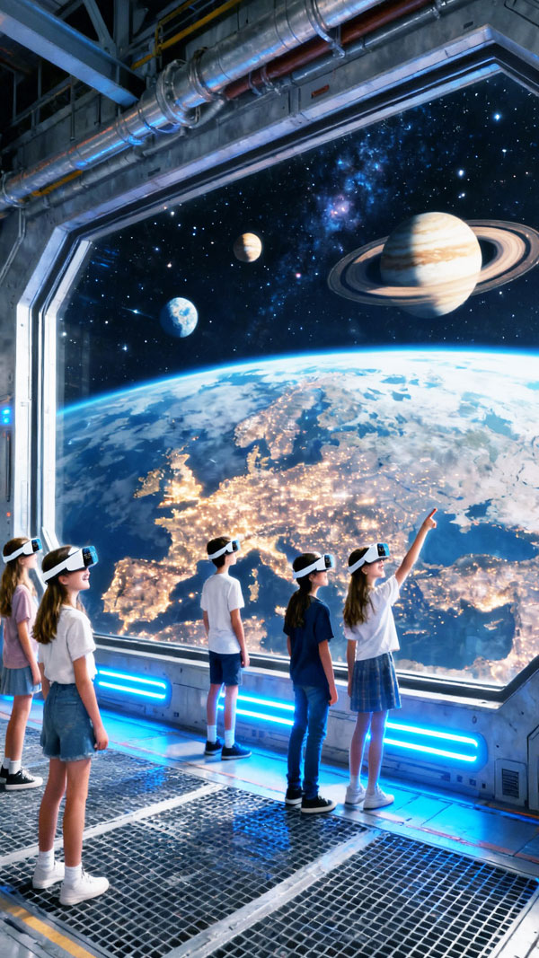 Τα απογεύματα και τα Σαββατοκύριακα μικροί και μεγάλοι μπορούν να τηλεμεταφερθούν στο διάστημα, να δουν μπροστά τους τη γη, σε φυσικό μέγεθος, το λιώσιμο των πάγων, το φαινόμενο του θερμοκηπίου, το δορυφορικό σύστημα Copernicus που μας στέλνει τα δεδομένα για το κλίμα. Στη συνέχεια οι εξερευνητές θα πάνε μια βόλτα στον βυθό να παρατηρήσουν την υποθαλάσσια ζωή -μια βόλτα γεμάτη εκπλήξεις-, στο δάσος όπου θα δουν την αποψίλωση των δασών, θα σβήσουν φωτιές και θα βιώσουν και άλλες πολλές απίθανες στιγμές. Πρόκειται για μια συναρπαστική βόλτα που συνδυάζει gaming με τεκμηριωμένη πληροφορία!