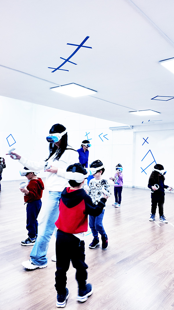 After the VR adventure, kids gather in our specially designed activity space to continue the fun: